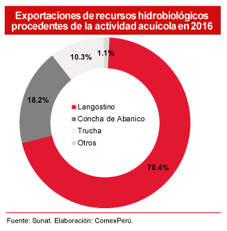 Una de las especies de la actividad acuícola más representativa en nuestro país es el langostino. Según cifras del Ministerio de la Producción (Produce), desde 2006[1], este producto se ha caracterizado por representar la mayor proporción de exportaciones de especies provenientes de la acuicultura (salvo en 2013, cuando fueron superadas por las exportaciones de conchas de abanico). Además, pertenece a las 3 especies principales (concha de abanico, trucha y langostino) que poseen, desde 2006, más del 93% de los volúmenes de cosechas en la actividad acuícola. En 2016, según Produce, la cosecha de langostinos alcanzó las 20,441 toneladas métricas (TM) (20.7% del total de especies acuícolas), solo detrás de la trucha, que alcanzó las 52,217 TM (52.9%).