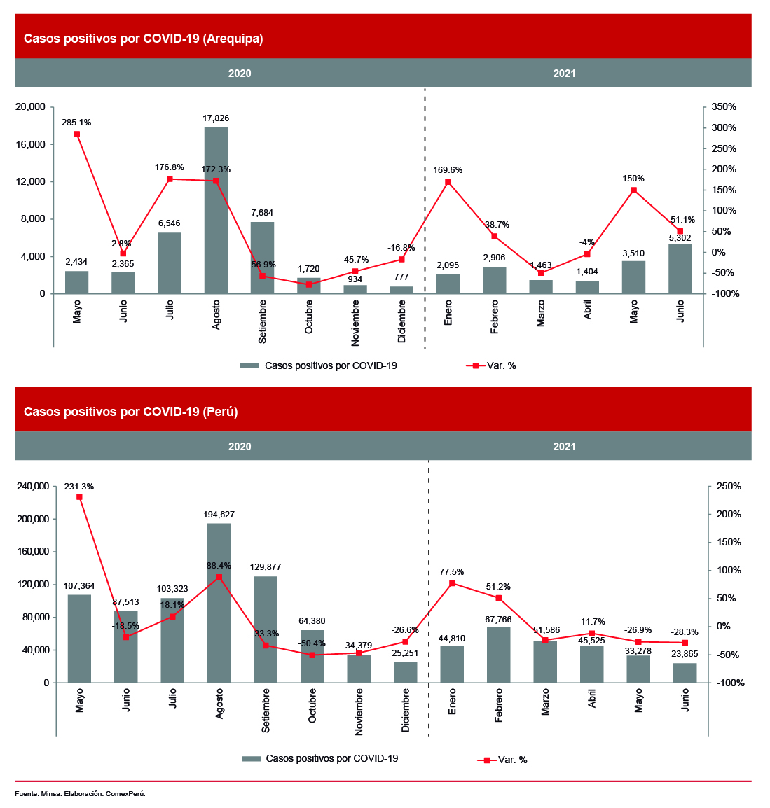 De acuerdo con el ministro de Educación, Ricardo Cuenca, las medidas implementadas en Arequipa no solo habrían sido tomadas para controlar el avance de los contagios, sino también para evitar su propagación a otros departamentos. El número de pruebas positivas en el departamento creció un 51.1% entre el mes de mayo y junio, mientras que a nivel nacional se observó una reducción del 28.3% en el mismo periodo. Una situación similar se registra en el caso de la mortalidad por la COVID-19. Si bien la ejecución de recursos destinados para controlar dicha enfermedad en Arequipa ha presentado uno de los mejores avances a nivel nacional durante la primera mitad de 2021, de acuerdo con el Ministerio de Economía y Finanzas, esto solo indicaría que el problema se encuentra vinculado a la eficacia del gasto público.