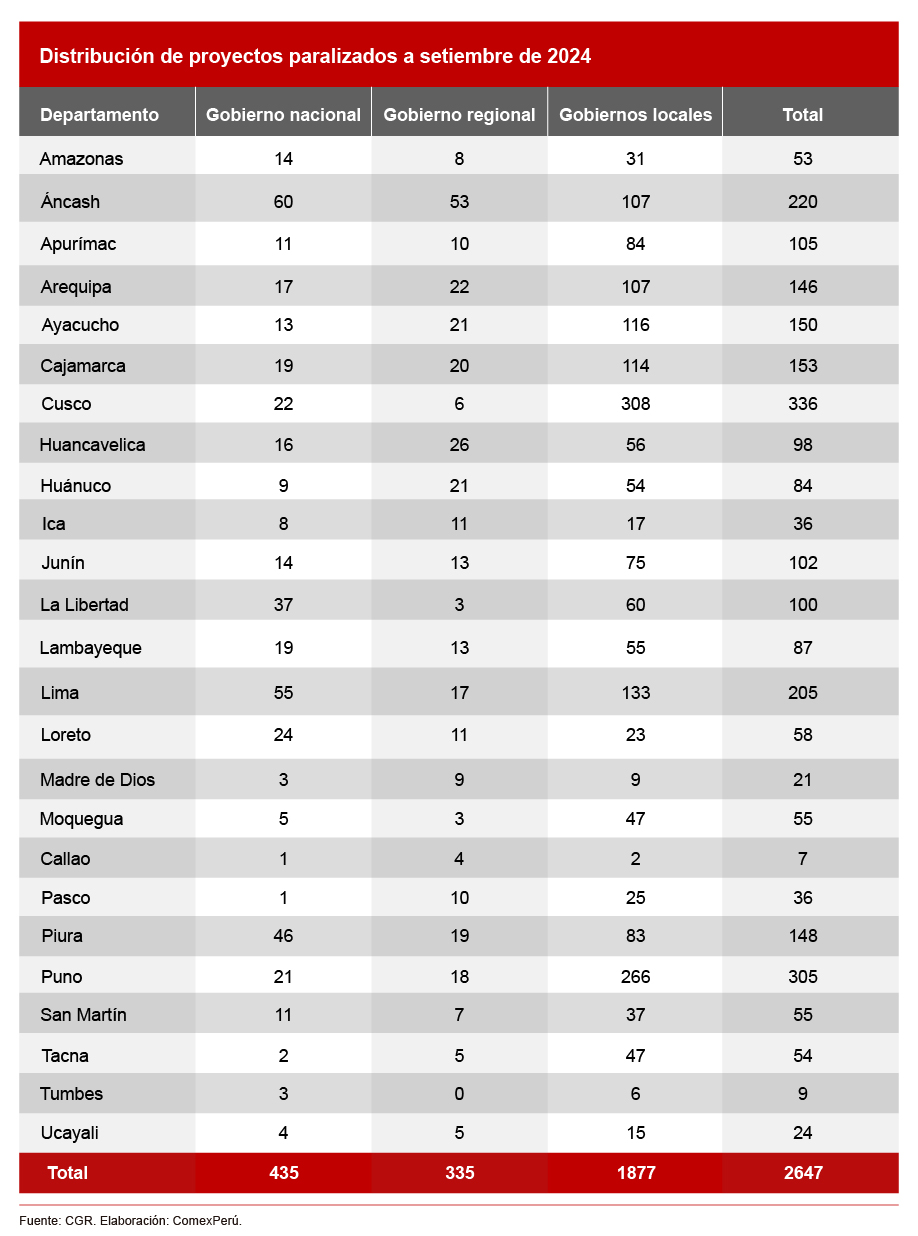 2,647 PROYECTOS ESTÁN PARALIZADOS A SETIEMBRE DE 2024