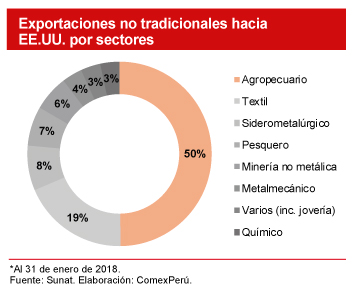 Un factor fundamental para este resultado ha sido el dinamismo del sector agroexportador, que en 2017 representó un 49.6% de las exportaciones no tradicionales hacia EE.UU. Entre 2009 y 2017, estas últimas crecieron un 187.4%, al pasar de US$ 580 millones a US$ 1,667 millones, es decir, a una tasa promedio anual del 14.1%. Contrariamente a lo que ciertos grupos señalaban, de la mano de una promotora legislación laboral, el TLC alentó la inversión en el sector agrícola y lo hizo más eficiente, con una expansión de la oferta exportable y un consecuente aumento del empleo y disminución de la pobreza en polos agrícolas (ver Semanario N.° 885). Asimismo, aunque en menor medida, el sector pesquero del rubro no tradicional ha mostrado también un resultado positivo, con una tasa de crecimiento anual promedio del 10.4%.