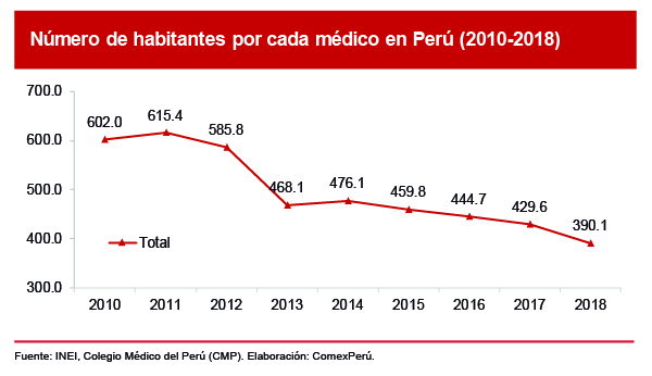 Según cifras del Instituto Nacional de Estadística e Informática (INEI), de 2018, departamentos como Cajamarca, Huancavelica, Amazonas y Ayacucho cuentan, en promedio, con 1 médico por cada 2,000 habitantes. Este déficit de recursos humanos evidencia la necesidad de pensar en una redistribución de los servidores de salud en aquellas regiones que cuentan con mayor número de médicos y que no implique su movilización física. En consecuencia, la telemedicina genera una ventana de negocios y mercado también para el sector privado, como la formación de hubs de telemedicina que incrementen la oferta de servicios médicos de calidad a través de la creación de call centers para la atención primaria de los pacientes.