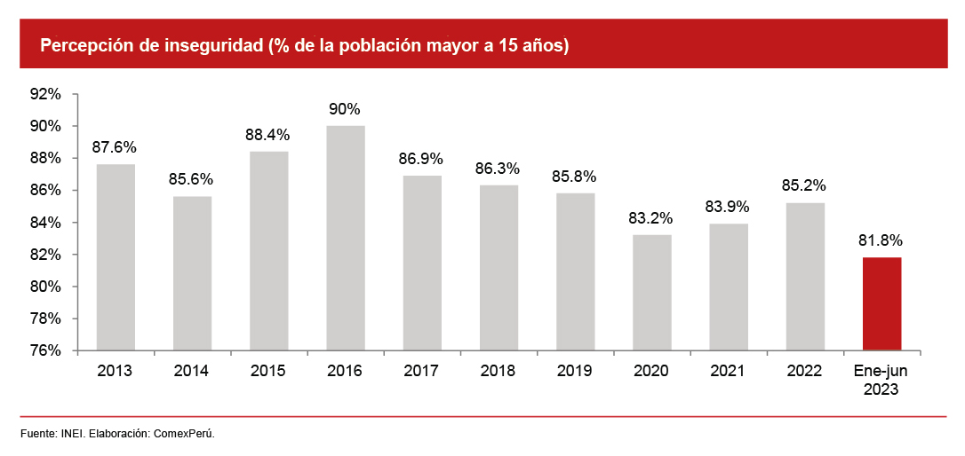 En los últimos diez años, según cifras del Instituto Nacional de Estadística e Informática (INEI), más del 80% de la población vive con una constante percepción de inseguridad, la cual se define como la sensación de estar en riesgo de sufrir algún acto delictivo o situación que ponga en peligro su seguridad, bienestar físico o moral, afecte sus derechos y la ponga en una posición vulnerable, expuesta a daños o riesgos. Dicho contexto evidencia la urgente necesidad de medidas efectivas que garanticen la protección y tranquilidad de todos los habitantes, y promuevan un ambiente seguro y pacífico para el desarrollo integral del país.