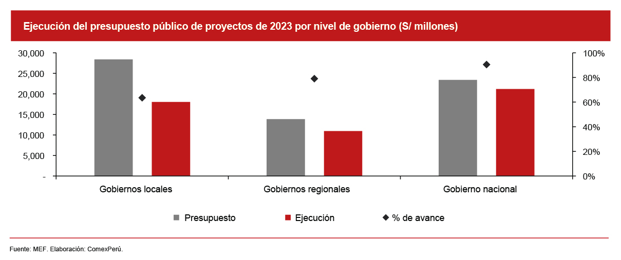 Según datos del MEF, la ejecución pública de proyectos cerró 2023 con un 76.4% de avance en la inversión, y fueron los Gobiernos locales (o municipalidades) quienes tienen tuvieron mayores dificultades para hacer uso de su presupuesto, con un porcentaje ejecutado del 63.6% al terminar el año. Lo peor de todo es que dentro de este grupo hubo algunos departamentos que simplemente no pudieron aprovechar los recursos transferidos, como Áncash, donde la ejecución de la inversión pública ascendió a solo un 44.8% en todo el año pasado, seguido por La libertad (54.4%) e Ica (54.7%).