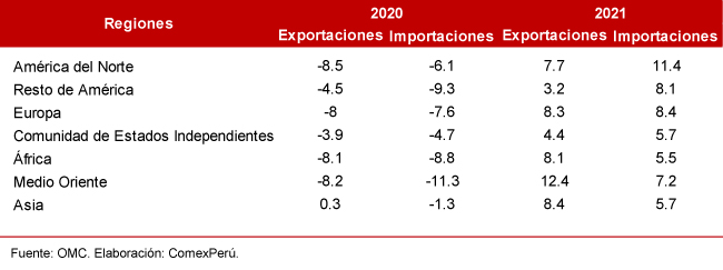 CRECIMIENTO DEL COMERCIO INTERNACIONAL DEL 8% EN 2021 REPRESENTA UNA OPORTUNIDAD PARA LAS EXPORTACIONES PERUANAS