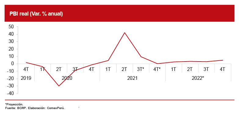 Si tales resultados se concretan, se registraría la tasa de crecimiento más baja en 13 años. Esta proyección pesimista por parte del BCRP considera que la inestabilidad política persistirá hasta el próximo año. Cabe mencionar que Credicorp Capital, por su parte, estima que la economía peruana crecerá solo un 2% en 2022.
