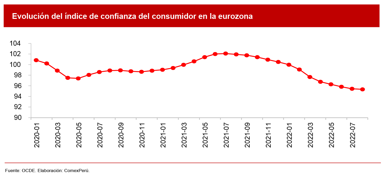 Esta situación no solo ha generado que se incremente la inflación en Europa, sino que también aumentó la incertidumbre en los mercados financieros europeos, lo que afectó principalmente a aquellas industrias más dependientes de la energía y redujo el ingreso real de las personas. Según un reporte del BCE, el consumo real de los hogares se contrajo y la confianza de los consumidores decayó. Sumado a esto, las principales economías europeas vieron afectadas sus exportaciones con China. El gigante asiático es, por ejemplo, el principal socio comercial de Alemania. En ese sentido, según el BCE, las restricciones impuestas en China asociadas a su política de COVID cero afectaron el desempeño de sus exportaciones.