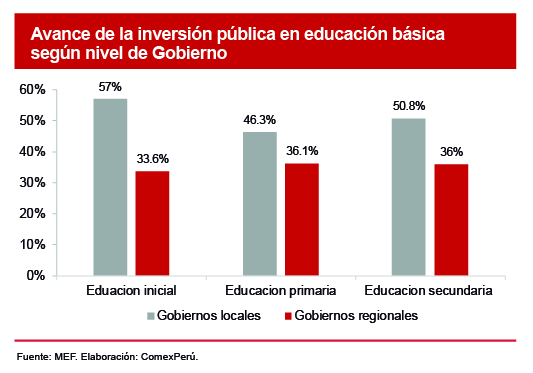 EJECUCIÓN DE LA INVERSIÓN PÚBLICA DE GOBIERNOS LOCALES EN EDUCACIÓN BÁSICA NO SUPERA EL 40%