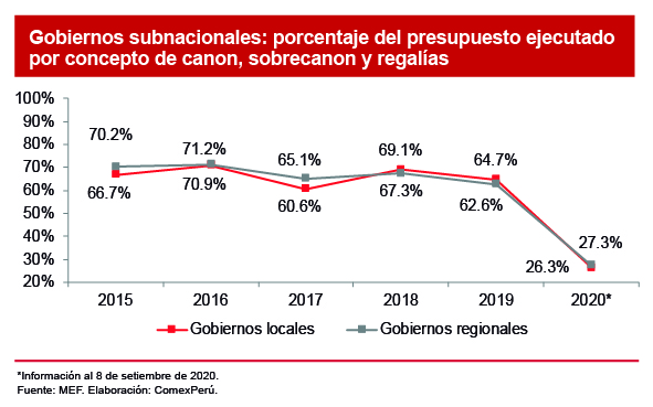 Frente a las cifras expuestas, se evidencia la incapacidad existente para una gestión eficiente de los recursos económicos provenientes del canon y regalías que deben beneficiar a la población de dichas zonas. En la situación actual, es inaceptable que la ejecución sea tan baja en comparación con años anteriores; enfocarnos en los sectores que impulsen la competitividad y la salud será clave para enfrentar las consecuencias de la pandemia.
