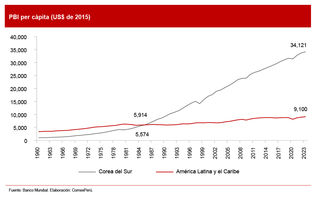 En primer lugar, es imperativo invertir en educación y capacitación para aumentar la productividad laboral. Corea del Sur es un ejemplo emblemático: inició su transición demográfica a la par de América Latina y el Caribe, pero logró multiplicar su ingreso per cápita a un nivel casi 4 veces mayor que la región para 2023 (US$ 34,121 vs. US$ 9,100), acelerando su bono y acortándolo, pero haciéndolo mucho más significativo, según la Comisión Económica para América Latina y el Caribe (Cepal). Esto, gracias a políticas orientadas a mejorar la educación y promover la investigación y desarrollo.