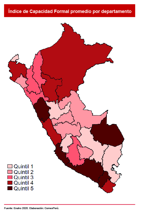 A lo largo del tiempo, las mypes peruanas han tenido una evolución positiva, pero volátil en términos de su capacidad formal. En un contexto de pandemia, durante 2020, se registró un índice promedio de 0.25, lo que significó una caída del 2.1% respecto de 2019. Estos resultados indicarían que la crisis causada por la COVID-19 ha impactado negativamente en su capacidad formal a través del deterioro en las condiciones dentro del ambiente de negocio a nivel nacional.