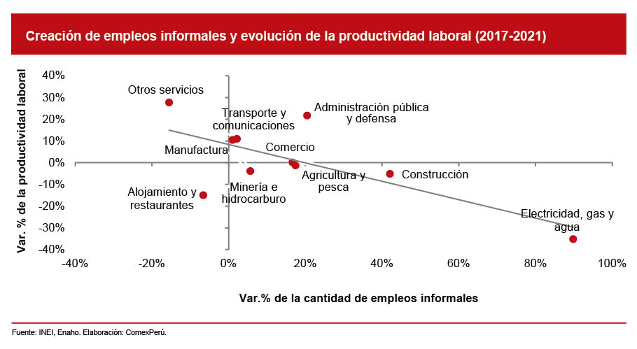 En el Perú, la gran mayoría de empleos son creados desde el sector informal. Esto se explica por diversos factores, como las fuertes cargas regulatorias y fiscales, y la debilidad de las instituciones, los cuales han contribuido a la informalidad del mercado laboral.