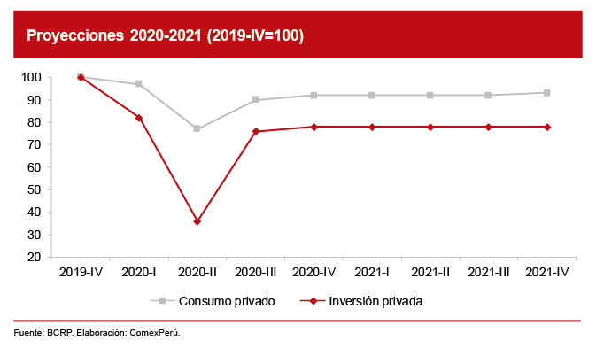 Por ello, las proyecciones del BCRP son más que alarmantes. Según el último Reporte de Inflación, al fin de 2020, la inversión privada se habrá reducido un 30%, la mayor caída en lo que va del siglo (equiparable solo a los 80). Lo que es peor, tanto esta como el consumo privado no volverían a los niveles vistos en el último trimestre de 2019 ni siquiera al cierre de 2021. Un retraso de al menos dos años.