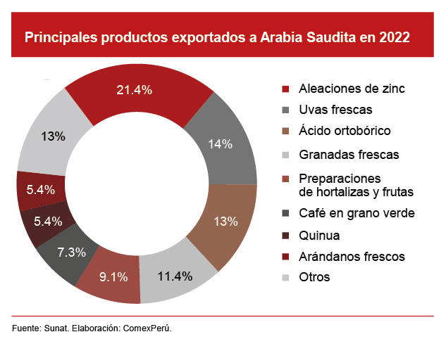 Pese a que el dinamismo de nuestras exportaciones a Arabia Saudita registra cifras menores en comparación con los principales destinos de nuestras exportaciones, este destino enfoca su demanda en nuestros productos no tradicionales, lo que constituye una oportunidad que debemos aprovechar y potenciar.