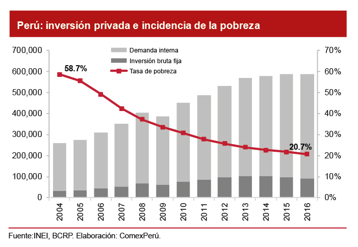 Aunque en niveles bajos en los últimos años, la inversión privada ha sido el principal catalizador de la economía peruana y de la reducción de la pobreza. Por ejemplo, la incidencia de la pobreza extrema entre los trabajadores del sector agropecuario de la costa (donde se lleva a cabo la mayor parte de la actividad agrícola moderna) pasó del 12% a solo el 0.5%, y la de la pobreza cayó del 57% al 20%, entre 2004 y 2015. No es coincidencia que los aumentos de la inversión privada se condigan con caídas en la tasa de pobreza, y que, en los periodos de desaceleración, la reducción de la pobreza sea menor. Esto se debe a que el Perú sigue una política de no intervencionismo, en la que el Estado tiene un rol promotor de la iniciativa privada, mientras se aboca a proveer los servicios básicos para la población, especialmente la vulnerable. ¿Por qué cambiar un esquema que ha tenido grandes resultados y retroceder hacia otro que dejó millonarias pérdidas para el Perú?