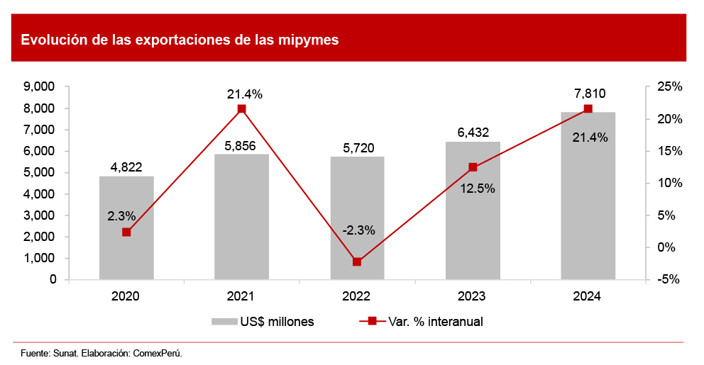 EXPORTACIONES DE LAS MIPYMES SUMARON US$ 7,810 MILLONES EN 2024