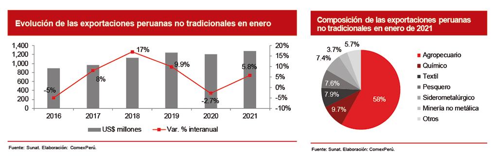 EXPORTACIONES NO TRADICIONALES AUMENTARON UN 5.8% EN ENERO DE 2021