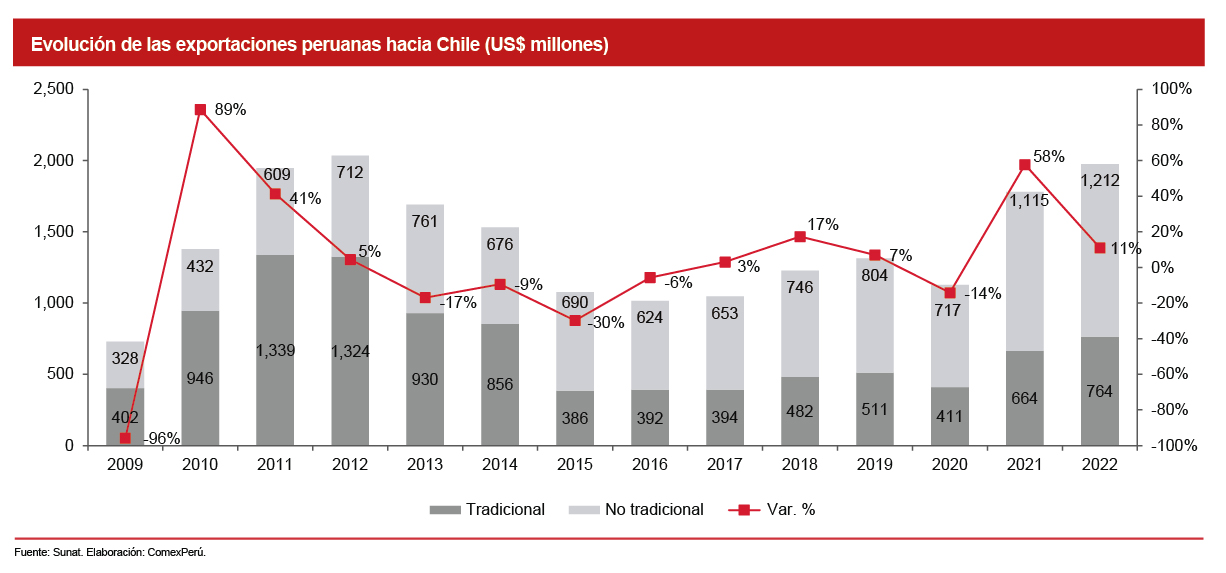 EXPORTACIONES PERUANAS A CHILE ALCANZARON RÉCORD HISTÓRICO, CON ENVÍOS POR US$ 1,975 MILLONES EN 2022