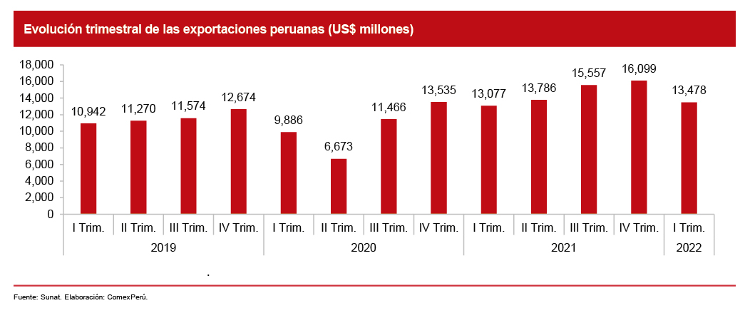 EXPORTACIONES PERUANAS EN EL PRIMER TRIMESTRE DE 2022 CRECEN UN 3% Y LOS ENVÍOS NO TRADICIONALES, UN 25%