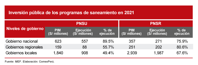 GOBIERNOS LOCALES NO INVIRTIERON MÁS DE S/ 1,883 MILLONES EN LOS PROGRAMAS NACIONALES DE SANAEMIENTO URBANO Y RURAL EN 2021