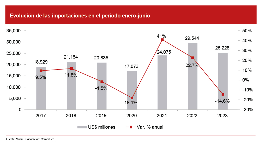 IMPORTACIONES A JUNIO SUMAN US$ 25,228 MILLONES, CON LO QUE SUMAN SEIS MESES CONSECUTIVOS DE MENORES REGISTROS RESPECTO DE 2022