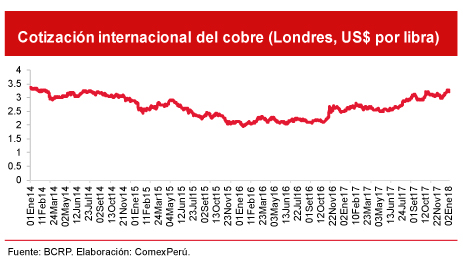 El cobre abrió el año con una cotización de US$ 3.2463 por libra, uno de sus valores más altos en los últimos cuatro años. Según diversos analistas, este buen desempeño en los mercados internacionales se mantendría durante todo 2018 y en los próximos años. ¿La razón? Principalmente, China.