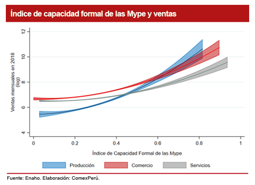 Motivados por estas preguntas y por el amplio espacio que existe para mejorar la focalización de las políticas públicas en favor de las Mype, en ComexPerú desarrollamos el Índice de Capacidad Formal de las Mype. Este instrumento, elaborado con datos de la Enaho, monitorea y permite hacer una evaluación anual rigurosa de las capacidades que tienen las Mype para formalizarse, según sus más importantes características empresariales. Entre estas, el índice evalúa las prácticas contables, tipo de propiedad, uso de servicios básicos y características del empleo. Así, el Índice de Capacidad Formal permite evaluar qué tan propensa es una Mype a estar registrada en la Sunat, lo cual es una ventaja frente a un indicador directo de formalización que podría estar subestimado.