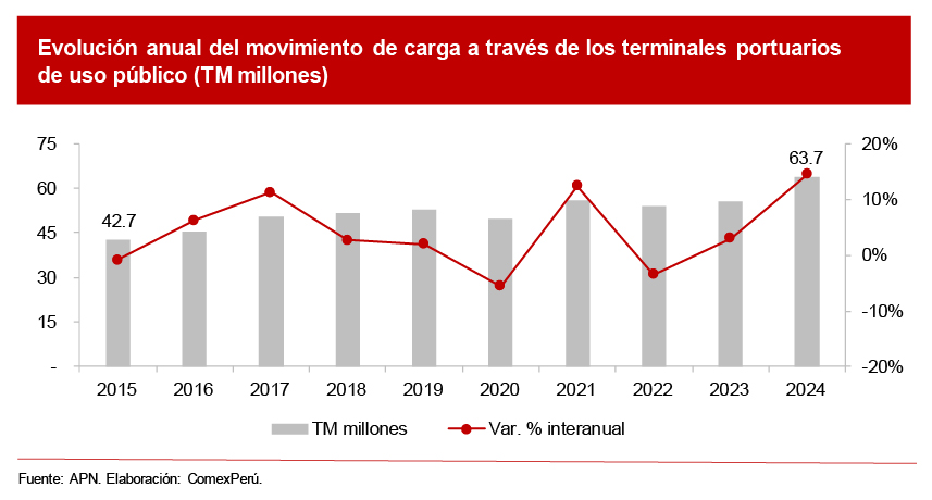 MOVIMIENTO DE CARGA EN TERMINALES DE USO PÚBLICO SUPERA LOS 63.7 MILLONES DE TONELADAS EN 2024