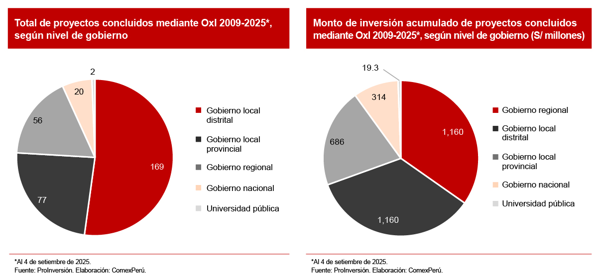 Desde 2009 a 2025, se han concluido 324 proyectos. El nivel de gobierno con mayor número de proyectos concluidos hasta la fecha son los Gobiernos locales, específicamente, las municipalidades distritales, con 169 proyectos. Les siguen las municipalidades provinciales (77), los Gobiernos regionales (56), el Gobierno nacional (20) y las universidades públicas (2).