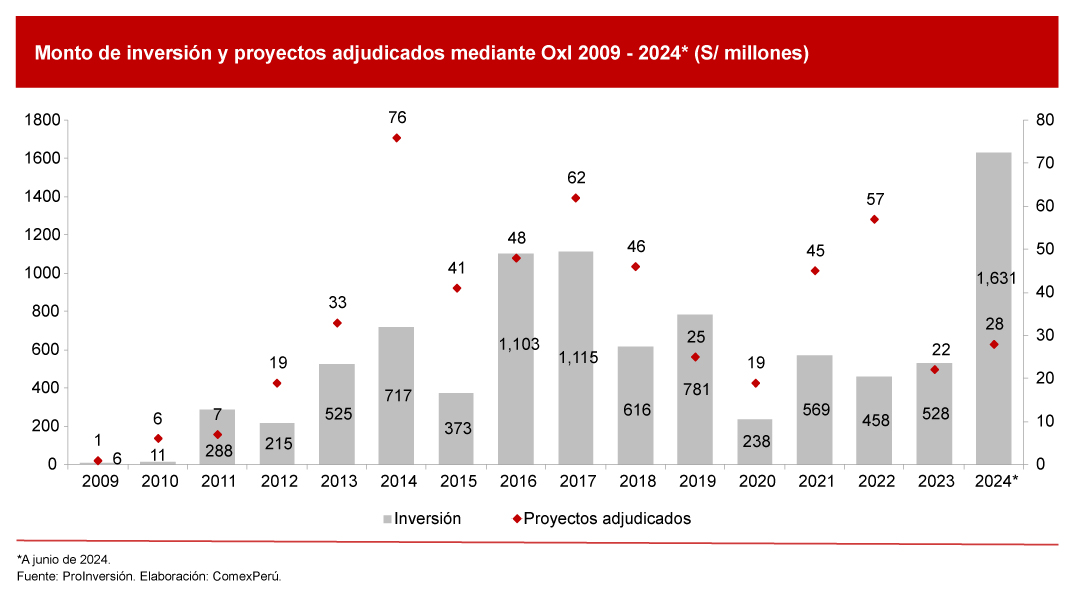 El mecanismo OxI surgió como incentivo para la participación del sector privado en proyectos de infraestructura pública que mejoren la calidad de vida y la competitividad del país. Este permite que las empresas privadas coordinen con los Gobiernos regionales y locales la ejecución de obras y, cuando estas culminen, las empresas solicitan un certificado que se presenta al Ministerio de Economía y Finanzas (MEF) como forma de pago de su impuesto a la renta, según ProInversión.