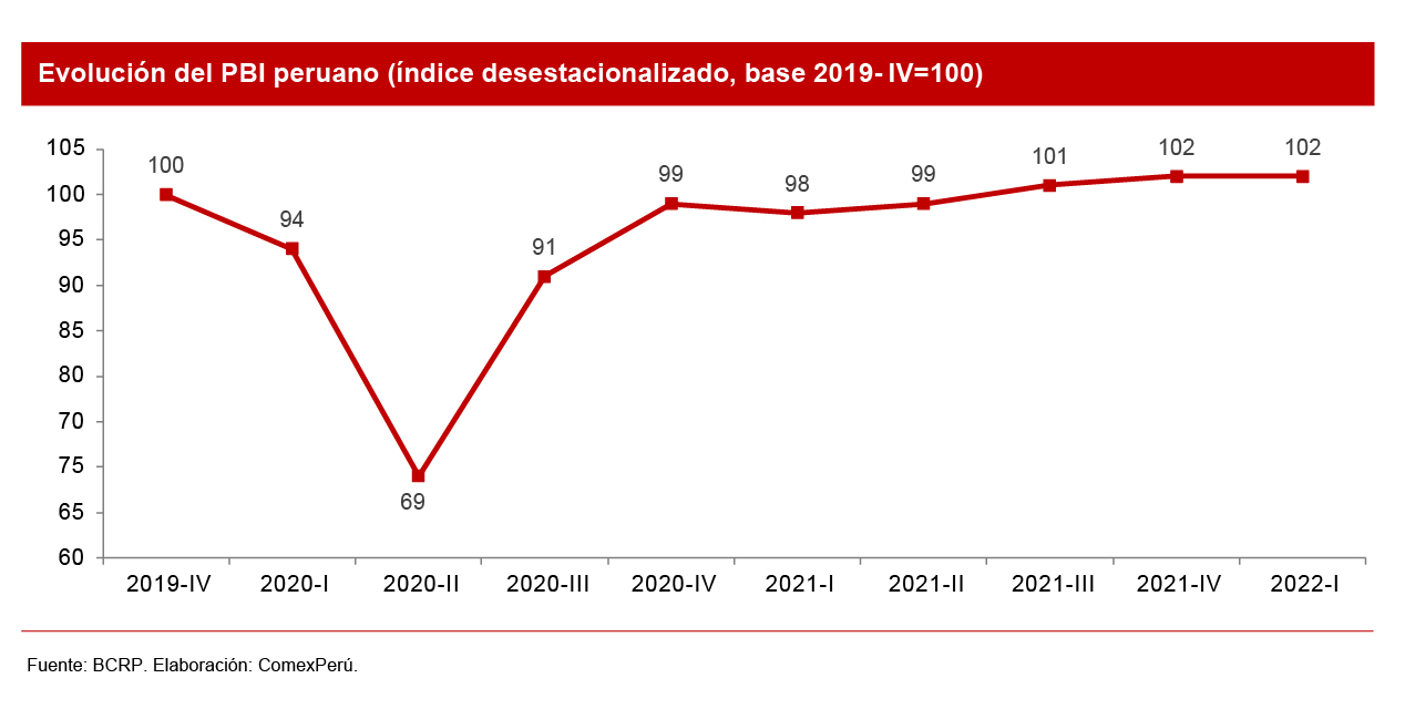 En resumen, se puede afirmar que los indicadores de empleo y crecimiento del producto en el Perú se están recuperando y, en algunos casos, superando los niveles prepandemia. Sin embargo, debido a las menores expectativas empresariales, así como un entorno económico mundial más complicado, las proyecciones para el 2022 son cada vez menos alentadoras. Sumado a esto, una inflación galopante en 2021 y los primeros meses de 2022 puede ser signo de una posible estanflación en el futuro.