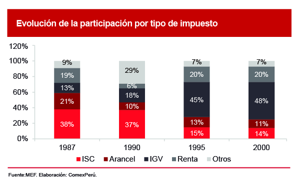 Una serie de reformas tributarias fueron instauradas a principios de los noventa, parte de un proceso de recuperación económica después de un periodo hiperinflacionario que no hizo más que perjudicar las cuentas fiscales. En 1988 se dio un primer paso, con la descentralización de las funciones del Ministerio de Economía y Finanzas (MEF), y la creación de la Superintendencia Nacional de Aduanas y Administración Tributaria (Sunat). En siguientes etapas se propiciaron cambios en aras de una administración tributaria más eficiente: se llegó a derogar 64 tributos, se simplificó un sistema tributario que no hacía más que incentivar a la evasión por su alta complejidad y se crearon regímenes especiales para fomentar la pequeña empresa, como el Régimen Único Simplificado (RUS) y el Régimen Especial de Impuesto a la Renta.