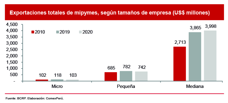 Inclusive, algunos partidos políticos proponen revisar y modificar todos los tratados de libre comercio de acuerdo con los intereses nacionales para el término de sus mandatos. Ello omitiría que estos se caracterizan por resultar de una negociación entre países o agrupaciones de estos, donde se busca favorecer el desarrollo del comercio de los bienes con mayor potencial de desarrollo en los nuevos socios comerciales y que, además, han permitido un desarrollo considerable de nuestras exportaciones durante la última década, las cuales pasaron de los US$ 35,849 millones a US$ 46,446 millones entre 2010 y 2019, un crecimiento del 29.6% durante dicho periodo. Además, estos beneficios contribuyeron también al progreso de las micro, pequeñas y medianas empresas (mipymes) que incrementaron sus exportaciones en un 14.8%, 14.1% y 42.5% durante el mismo periodo, un desempeño considerable que, si bien podría mejorarse mediante políticas que faciliten el acceso al comercio internacional y cuyo dinamismo resultó perjudicado el año pasado por la presente pandemia, facilitaron su crecimiento y una mayor generación de empleo.