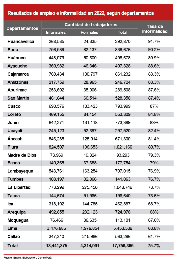 RESULTADOS DE EMPLEO EN 2022: CASI 300,000 TRABAJADORES MÁS EN LA INFORMALIDAD