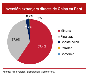 Por otro lado, el TLC influyó en posicionar al Perú como un país atractivo para el ingreso de inversiones chinas. De acuerdo con cifras de ProInversión, sin perjuicio de las limitaciones propias de la institución en términos de registro de información, la inversión extranjera directa[2] (IED) de China en el Perú alcanza en la actualidad los US$ 284 millones, de los cuales US$ 157.8 millones están en el sector minero y US$ 50 millones en el sector finanzas. De esta manera, China se ha convertido en un socio importante para nuestra economía, pues, en 2018, sus empresas produjeron un 25% del cobre, el 100% del hierro y un 35% del petróleo del país, según cifras del Ministerio de Energía y Minas. Asimismo, es el segundo mayor inversor minero, con cinco proyectos en la cartera de construcción de minas por un monto de US$ 10,155 millones.