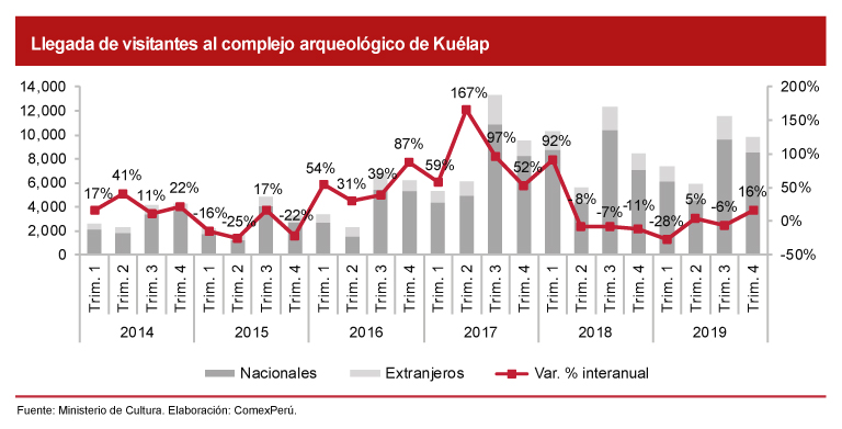 Un caso relevante que ejemplifica esta situación se observa en Amazonas. Durante el primer trimestre de 2017, este departamento tuvo un incremento significativo en la llegada de turistas a raíz de la inauguración del nuevo sistema turístico de telecabinas que conecta al distrito de Nuevo Tingo, ubicado a 50 kilómetros de la capital, con la entrada al complejo arqueológico de Kuélap. El objetivo de esta iniciativa, enmarcada dentro del Plan Estratégico Sectorial Multianual 2016-2021 del Ministerio de Comercio Exterior y Turismo (Mincetur), fue crear polos turísticos descentralizados mediante las actividades de promoción y la creación de vuelos interdepartamentales (ver Semanario 883).