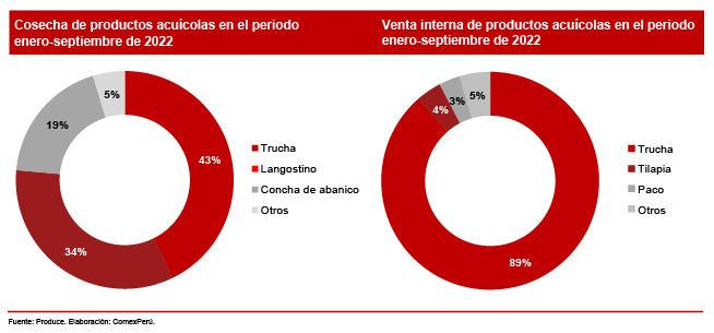 Según cifras del Ministerio de la Producción (Produce), en el periodo enero-septiembre de 2022, la producción acuícola fue de 37,169 toneladas métricas (TM), lo que representa un 7.6% más con respecto al mismo periodo de 2021 (34,550 TM) y más del doble que en 2015 (14,647 TM).